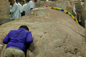 It is said that people used to do Pradakshinas (rounds) around it in the past. The temple staff has already removed one pillar as the size of the Nandi has increased.