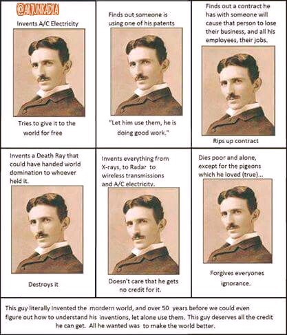 “Ere many generations pass, our machinery will be driven by a power obtainable at any point in the universe. This idea is not novel…We find it in the delightful myth of Antheus, who derives power from the earth; we find it among subtle speculations of one of your splendid mathematicians….Throughout space there is energy. Is this energy static, or kinetic? If static our hopes are in vain; if kinetic – and this we know it is, for certain – then it is a mere question of time when men will succeed in attaching their machinery to the very wheel work of nature.” – Nikola Tesla