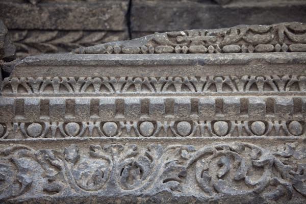 The carving on the frieze of the Garni temple does not appear on its 24 columns indicating that the base belongs to a different time and school of architecture.