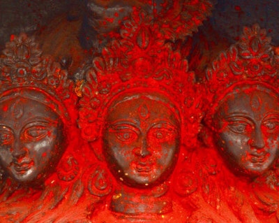 As per Kālikā Purāņa, the time when Devī Satī’s vagina fell in this region, it began to sink into Rasātala and Tridevas- Brahmā, Vişņu & Rudra themselves failed to bear the weight of Yonimaņđala. It was then that Bhagavatī Herself manifested there and joined Tridevas to bear the vagina of Her own incarnation.