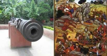 Jean Baptiste Tavernier recorded a local tradition in the 1660s that gunpowder and artillery were first invented in Assam from whence they spread to China and he mentioned that the Mughal general who conquered Assam brought back numerous old iron guns captured during the campaign.