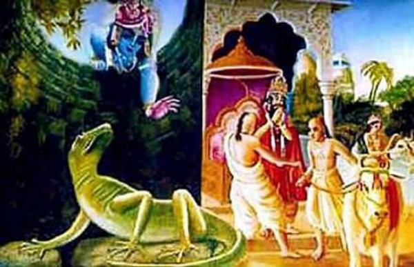 Krishna fetched him out of the well and the dinosaur reveals its identity as King Nriga, who was son was Ikshvaku.